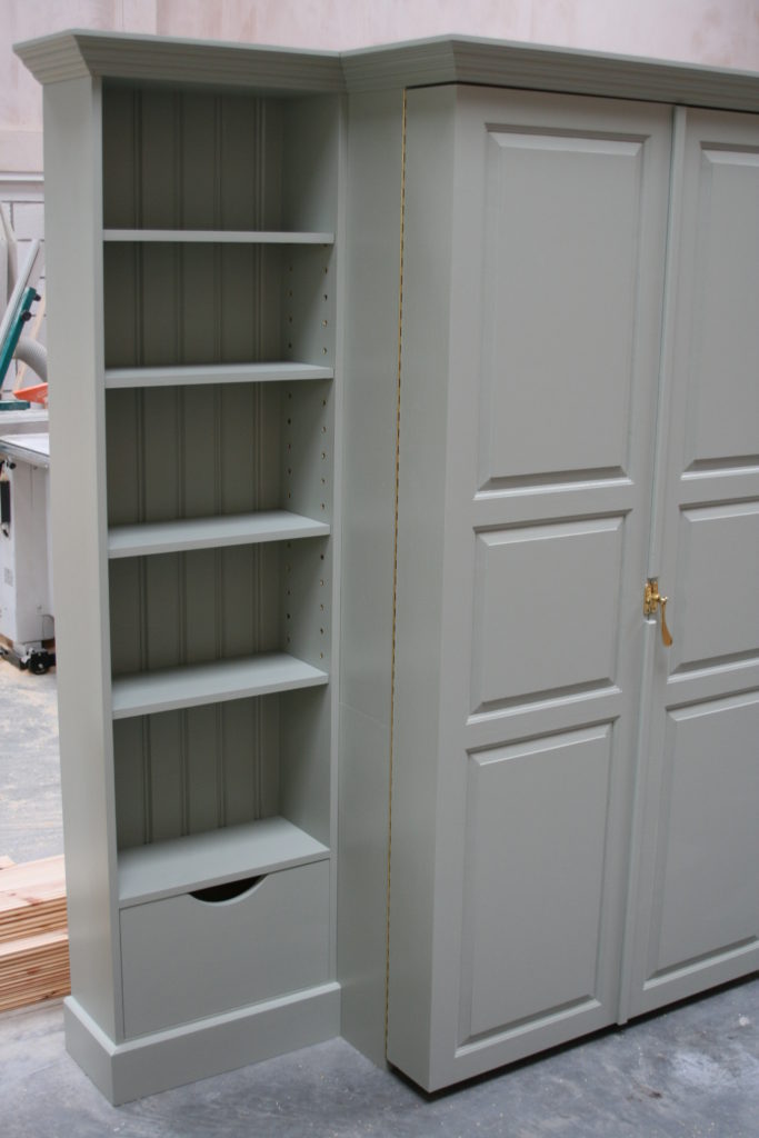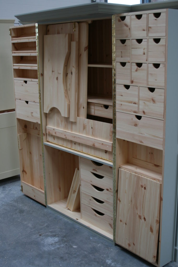 The Quilters Cupboard is the largest cupboard in our range. Designed essentially for the patchwork and quilting enthusiast, but can easily be adapted for use as a hobby, office or sewing cupboard. The pull-down flip-over table provides a large working area, which features a drop-in box allowing your sewing machine to be made flush with the working surface.